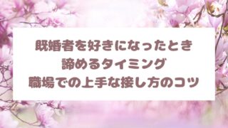 片思い 既婚者を好きになったときの諦めるタイミング|職場での上手な接し方のコツ 既婚者を好きになってしまったけど、いつ諦めればいいのか迷ってしまう…そんなあなたへ。本記事では、諦めるタイミングの目安と、職場での上手な接し方のコツをわかりやすく解説します。心を大切にしながら、毎日を少しでも過ごしやすくするヒントが見つかりますよ。 2025.11.09 片思い